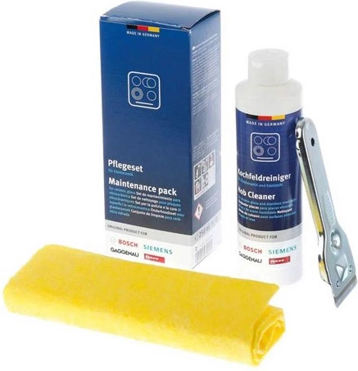 B/S keram.kookpl.onderhoudssetMet de Bosch Siemens Keramische Kookplaat Reinigingsset heb je alles in huis om jouw keramische kookplaat glanzend te krijgen en te houden. De set bestaat uit 3 producten: