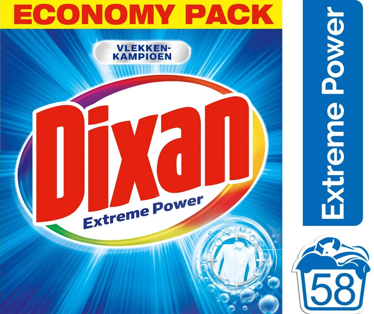 Dixan Extreme Power waspoeder levert altijd goede prestaties tegen hardnekkige vlekken dankzij de vlekkendetectieformuleÂtechnologie.