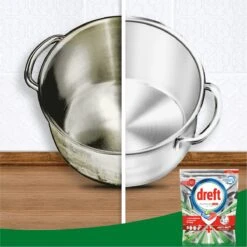 Dreft Platinum Plus All in One vaatwascapsules leveren een zo goed als nieuwe vaat. Ze leveren de beste reiniging van Dreft en helpen zelfs de dofheid die na verloop van tijd is opgebouwd weg te nemen om de oorspronkelijke glans van je vaat te herstellen. Dreft Platinum Plus heeft een geïntegreerd voorwassysteem en doet het voorwasprogramma voor je. Met Dreft Platinum Plus hoef je niet voor te spoelen, zodat je water bespaart en milieuvriendelijker bent. Dreft combineert vloeistof en poeder in één krachtige capsule. Het ultra-oplosbare zakje lost snel op en werkt goed in korte cycli omdat het snel begint te reinigen om de klus klaar te krijgen. En ze zijn gemakkelijk te gebruiken. Plaats ze gewoon in het doseerbakje van je vaatwasser, met verpakking.