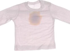 Wrijf vervolgens stof op stof en spoel het goed uit met warm water. Bij hardnekkige vlekken is herhaling mogelijk.