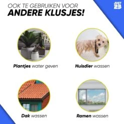 De borstel is makkelijk afneembaar waardoor je het ook kan gebruiken als hoge druk reiniger of spuitpistool. Je kunt de borstel hierdoor ok gebruiken om de plantjes water te geven, zwembaden bij te vullen of om je huisdier schoon te maken.