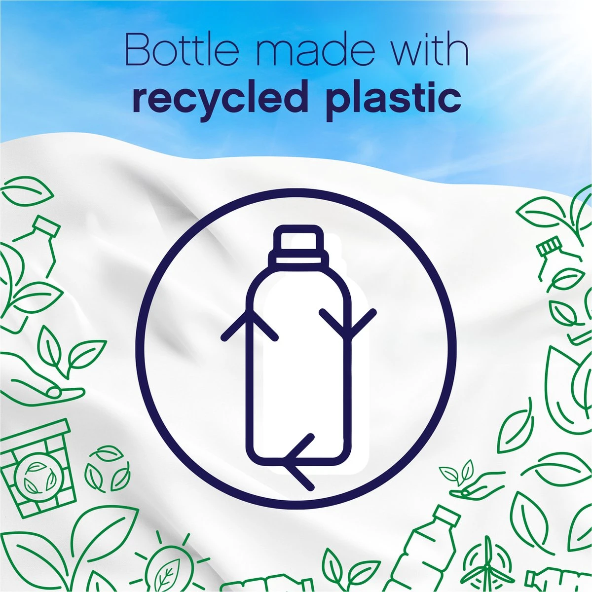 - Fles van 100% gerecycled plastic (exclusief dop en etiket) die opnieuw gerecycled kan worden