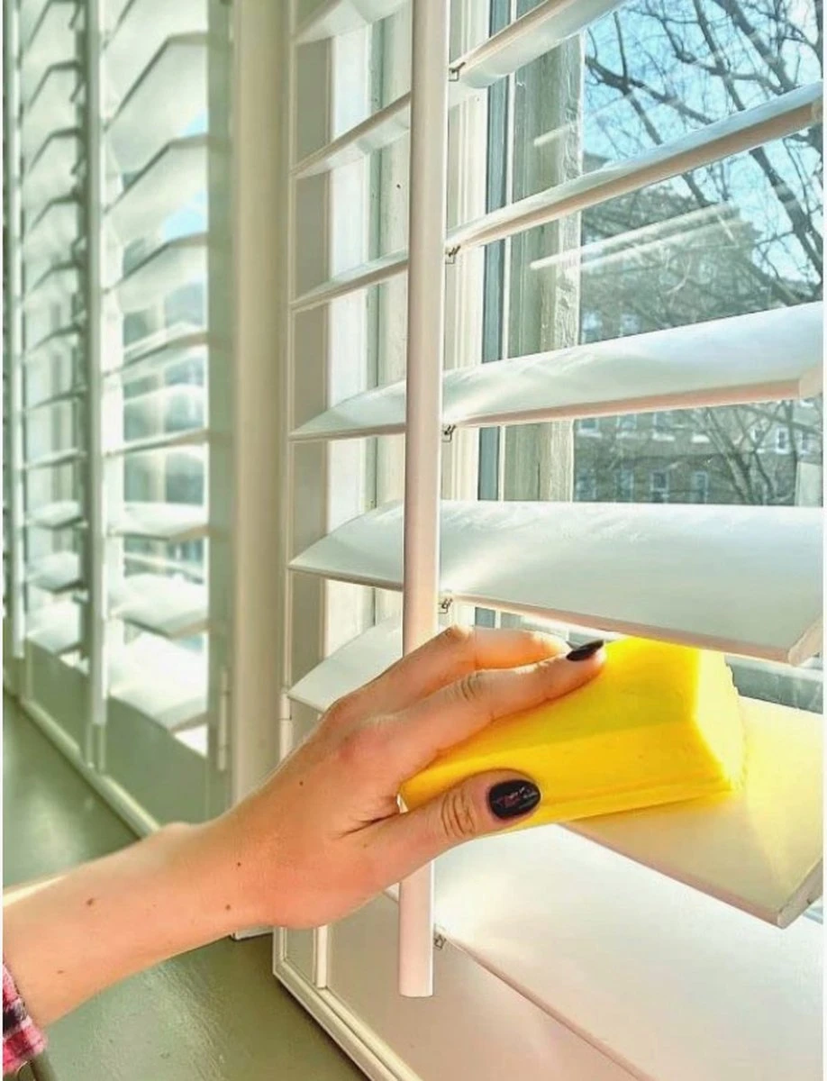 Reken af met al het stof in uw huis en gebruik de Scrub Daddy Damp Duster. Eén keer vegen en alle stofdeeltjes worden moeiteloos door de sponsdoek opgenomen.